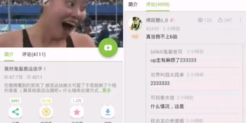 “會(huì)游泳的表情包”傅園慧在接受采訪時(shí)金句頻出,“58秒95,我以為是59秒!”“我游這么快?!我已經(jīng)很滿意了!”“我已經(jīng)用了洪荒之力啦!”“雖然沒拿到獎(jiǎng)牌。。啊?我是第三?那還挺好的。”讓我們知道國家級(jí)運(yùn)動(dòng)員不是一個(gè)符號(hào),也不是金牌數(shù)量,他們也可以是可愛活潑,時(shí)而迷糊的姑娘。雖然拿了銅牌,但是傅園慧成為網(wǎng)紅的勢(shì)頭并沒有下降,今日在彈幕網(wǎng)站上更是在自己的鬼畜視頻下出面吐槽。
